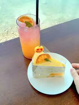 The Ade matched the color of the ocean so well!!! It was a beautiful color 🥺 It was a pineapple-flavored and orange-flavored Ade!! It was refreshing and delicious ㅎㅎㅎ
