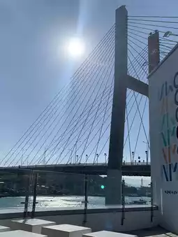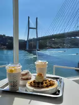 The ocean and Geobukseon Bridge are right in front, so the view is really pretty