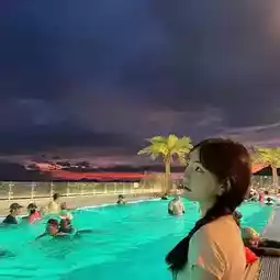The Ramada Hotel in Yeosu that I went to in the summer was good value for money and the pool was really pretty at night. And during the day, there was an ocean view... The ocean view that I saw when I opened my eyes in the morning was really pretty and the hotel was pretty too.