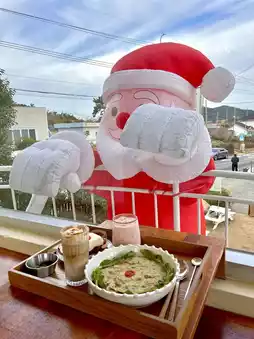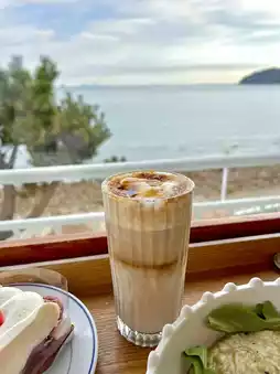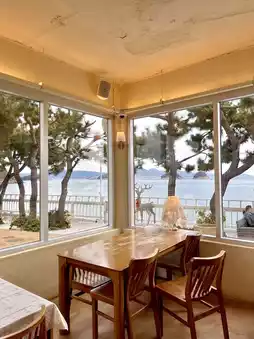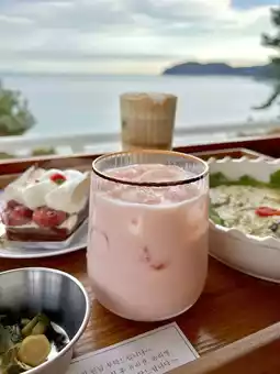 The only ocean view cafe right in front of the most beautiful beach in Yeosu, Musulmok Beach, famous for its framed ocean view