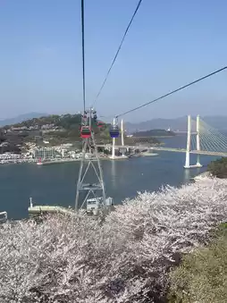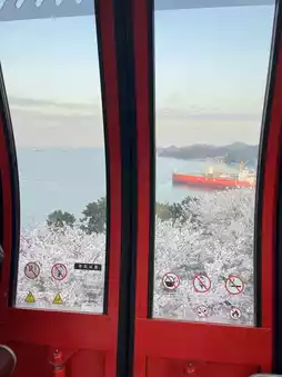 This is my Nth time riding the cable car over the sea, and this year, there were a lot of cherry blossom trees, so it felt more romantic :)