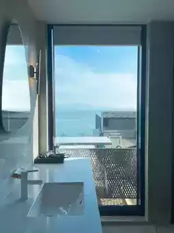There are outdoor cabanas, sunbeds, and sauna rooms, so it's good for maintaining body temperature after swimming, and it was really nice to dry off and go to the gallery!