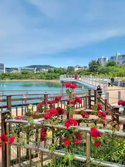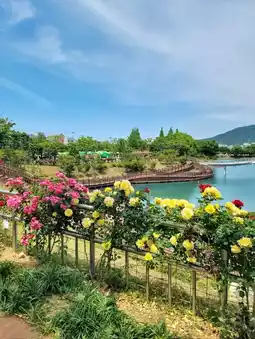 Since taking photos with the lake is the best, we took a walk along the riverside and enjoyed the roses. 🩷