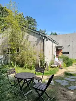 From the entrance, there is a cafe in the thicket of trees?
