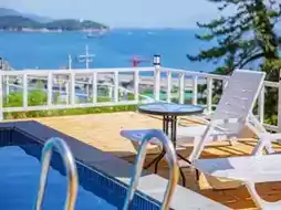 The ocean of Yeosu and the South Sea spreads out in front of the private pool,