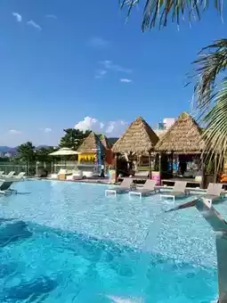 If you were to pick the most exotic and best-viewing swimming pool in Korea, this would definitely be it. Since you can use it together with La Terrasse Water Park, the swimming pool is well-maintained. The photo zones built around it are also really