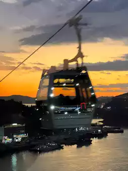 There weren't many people in line. We waited until the evening to get on the cable car, and the timing was just right. After nightfall, the outside of the cable car lights up, like little stars in the sky.