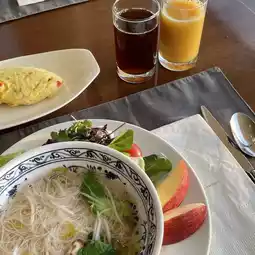 The breakfast, which felt like eating in a warm greenhouse, had quite a variety of options. Korean food, hot food, bakery, everything was prepared, and