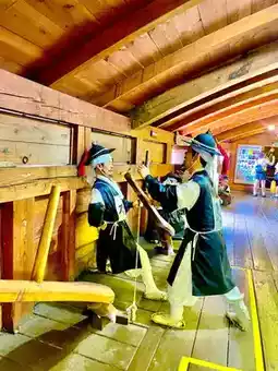 • The interior is connected by wooden stairs and passageways, so you can feel the structure of an actual battleship with your body and move around.