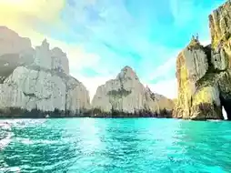 Sharp cliffs, as if honed by a blade, rise like spears tearing through the sky. An army of silence stands unyielding against the fierce waves.