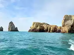The sea, as always, breathes its ancient blue breath, lifting massive stone pillars into its embrace.