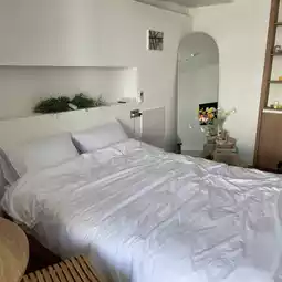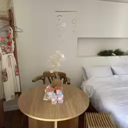 Gamidestay, a sentimental lodging in Yeosu! There's room 34 in vivid colors and room 33 in wood and white. This is room 33. Haha.
