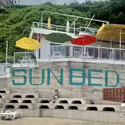 🏖️ Plenty of ocean-view seats, and free parasol rentals are available below.