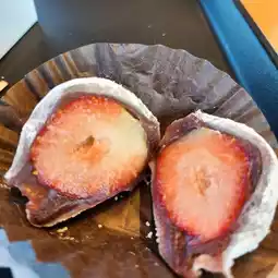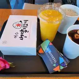 When you arrive at Dolsan Station by taking the marine cable car, you will find fresh strawberry mochi and camellia flowers at Cafe Bonito~