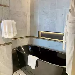 The lobby feels small compared to the size of the hotel, but the rooms are spacious and the bathtubs are big, so it's good for a half-body bath 💯