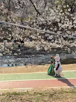 Songpa Yeouid Park has a large cherry blossom forest. When the breeze blows, the petals cover the grass like a pink snow. Here, whether you are taking a stroll or having a picnic, the atmosphere is superb.