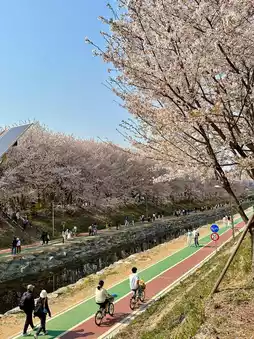 Along the Yangjaecheon River, cherry blossoms and clear river water complement each other, and the river breeze carries the fragrance of flowers, which is very comfortable.