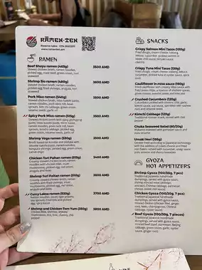 If you're craving delicious, authentic ramen in Yerevan, Ramen-Ten is the place to go! Located in the heart of the city, this stylish ramen shop offers a cozy and modern atmosphere. I ordered the Ebi Shio Ramen, and it was absolutely fantastic—rich, flavorful broth with perfectly cooked noodles and fresh shrimp.