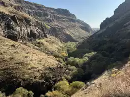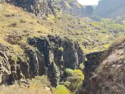 Please note that there are actually two trails, one that goes above the canyon and one that goes into the canyon. This trail is the one that goes into the canyon, which uses old restored trails in the Saghmosavank area that gently wind you down into the river gorge. Be wary of snakes in the gorge in the spring, and keep in mind that there are two short sections where the trail consists of small boulders that need to be traversed.