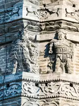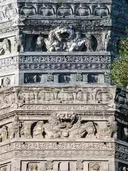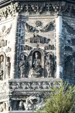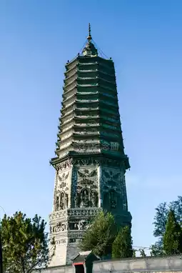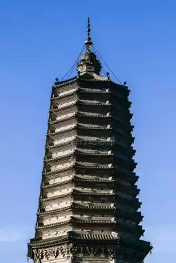 Guangsheng Temple Pagoda is an octagonal dense-eaves solid brick pagoda with thirteen floors, about 49.9 meters high. The pagoda platform is a regular octagon, with each side 6 meters long and 2.9 meters high.