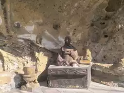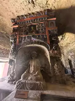The West Area is the main part of the Wanfo Temple Caves, consisting of 9 caves divided into two levels. Cave 1 is the largest, and the statues of Buddha and the donors on the central pillar are precious relics from the Northern Wei Dynasty. Cave 6 features a statue of Maitreya with crossed legs, standing 3.5 meters tall, showcasing the typical style of Northern Wei statues. The West Area also includes the Yuan Jing statue inscription, which is of great calligraphic value and is considered to be "the best of the Yuan Wei inscriptions."