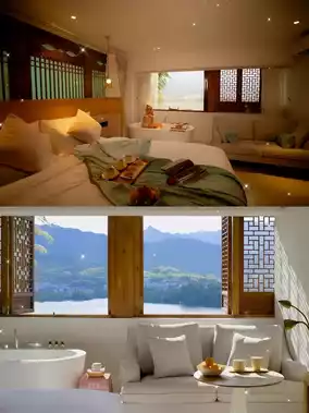 "Qingmei Academy" is located adjacent to Hongcun, integrating the tenderness of ink painting into the 8,000m2 garden. In addition to guest rooms, the hotel is equipped with a variety of public areas such as indoor hot springs, outdoor swimming pools, conference rooms, coffee bars, restaurants, etc., which can meet the needs of vacation and business.