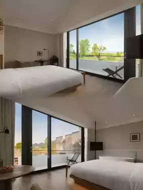 There are 16 guest rooms, hidden in 4 courtyards, with views of the mountains, the wilderness, or the courtyard. Two of them are typical Qing Dynasty Huizhou houses. While protecting and repairing the original buildings, including those exquisite carvings, bright and clean modern spaces are embedded inside. In addition, there are modern style rooms to choose from.