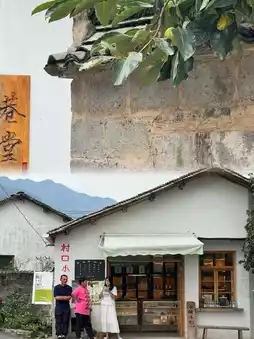 🏕️ Strolling along the bluestone road in the village, you can reach Bishan Bookstore. It is said that this is the most beautiful bookstore in rural China. There are many cafes on the first floor, with several walls of books 📚 The wooden stairs on the right can lead to the second floor, where you can see the Huizhou style through the window.