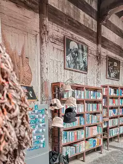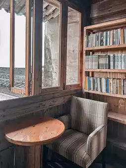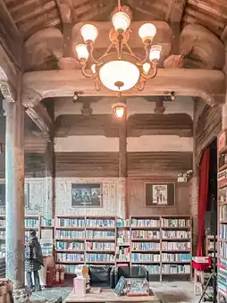 The reading area on the second floor, from here you can overlook the distance and the rooftops of Hui-style architecture.