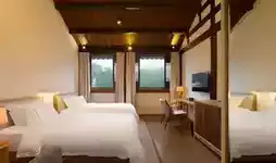 In the core area of the ancient Huizhou cultural tourism district, within the Chengkan Bagua Village scenic area, there lies a heavenly retreat - the Shude Hall Hotel. Here, the white walls and black tiles complement the horse-head walls, while the thick beams and slender pillars along with the inner courtyards create an interesting contrast, as if traveling back to the late Ming and early Qing dynasties, making visitors linger and forget to return. Shude Hall Hotel not only retains the most original and characteristic ancient Hui-style architectural style but also ingeniously integrates it with modern elements on the basis of in-depth exploration and development, creating a resort hotel that is both quaint and traditional yet modern.