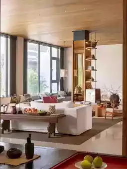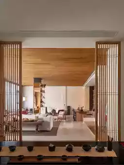 There is a large public area with a meeting room 🖥, a bar 🥂, and a children's playground. The most special thing is the lobby, where the wabi-sabi style furniture 🛋 echoes the fireplace. The green plants outside the window are full of vitality.