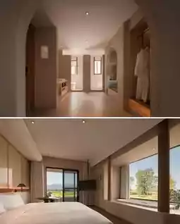 The homestay is located at the entrance of a miniature ancient village, without disrupting the original layout of the village, and coexists harmoniously with the local villagers, as if it were a natural part of the environment. The lobby was once the site of the village's ancestral hall, maintaining the simple beauty of Huizhou architecture with its white walls and grey tiles. Upon entering the interior, one discovers a whole new world.