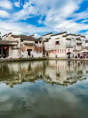 The center of the scenic area and the place that appears most in this article's pictures. Huizhou-style buildings are reflected in the crescent-shaped water, arranged in various shapes.