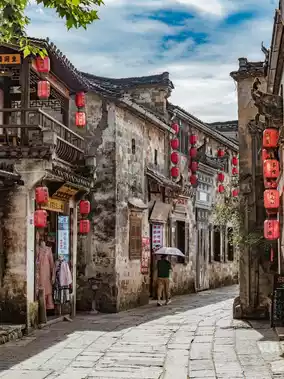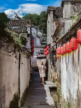 The alley in front of the door can create a sense of depth, with Huizhou-style buildings at the end.