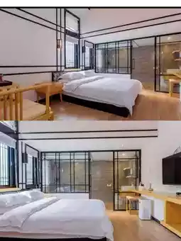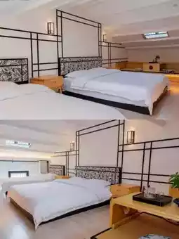 The homestay's overall decoration features a fantastic blend of natural wood and modern architectural styles! It has a cinema-style hall, a Huizhou-style tea room, and a fireside chat area, which is very popular nowadays. It's perfect for those looking to relax. Outdoors, there's a rooftop bar and an open-air restaurant, ideal for enjoying a drink in the evening. There's also a multi-person conference room, suitable for company team building and gatherings with friends.