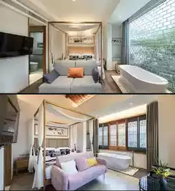 The homestay has a total of 25 unique guest rooms, offering a variety of room types. Each room is cozy and well-designed! The earth-toned interiors create a warm and inviting atmosphere. The simple design ensures a comfortable and pleasant stay. The solid wood furniture is exquisite and substantial. The rooms are spacious, bright, clean, and comfortable, with all the necessary amenities. Underfloor heating and smart toilets add to the convenience!