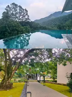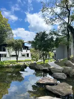 🏨 Weixi Garden Resort is located in the Weixi Tourism Resort Area of Yuting Town, Yi County, nestled in a mountain valley at an altitude of 300 meters. Built against the mountain, 🌟 it incorporates the ancient Huizhou architectural design philosophy, surrounded by lush flora, offering a poetic escape from the hustle and bustle in these Zen-inspired mountains. 🏞️ The hotel is situated at the mountain base, ideal for road trips, with shuttle service available from the parking lot to the hotel. ✨ The hotel boasts exquisite design with 57 well-appointed rooms, spacious and comfortable. 💎 Public areas feature rich amenities including a café, gym, swimming pool, tea room, art gallery, and moxibustion area, along with camping and lawn BBQ options. The serene Zen courtyard and natural oxygen-rich environment purify every breath, while the lush trees around the pool make for perfect photo ops 📷. Enjoy fun activities like intangible cultural heritage DIY crafts and farm picking. [Joyful] It's the perfect place to unwind, with babbling streams, birdsong, fragrant flowers, and fresh air—pure vacation bliss 💯.