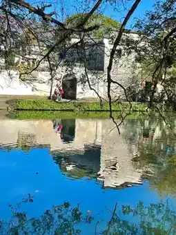 What to capture: The arched bridge over South Lake with traditional buildings and water reflections.