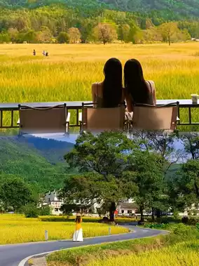 Actually, the vast fields outside Hongcun Village are the most beautiful autumn shooting locations. The golden waves of rice and distant mountains create stunning layers, and there’s no need to buy tickets to enter the scenic area~