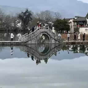 At the entrance to the village is Nanhu Lake, which reflects the beautiful panoramic view of the village and the mountains in the background. There is also the moon-shaped Moon Pond in the center of the village, which also reflects the old townscape. Waterways run throughout the village, and the water is clean. Apparently, in the past, people would use the ponds to wash vegetables, do laundry, or whatever the time of day.