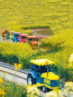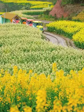 The countryside train runs through the blooming rapeseed flowers in March, it's really like a fairy tale world~, shuttling through the rapeseed fields, it's so romantic!