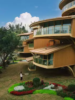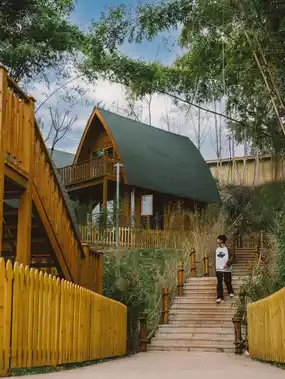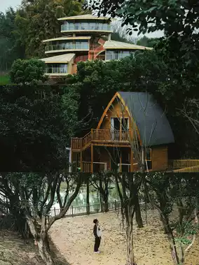 The forest lake cabin built based on the original terrain is like a dream home in the forest