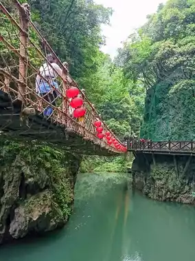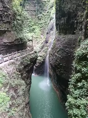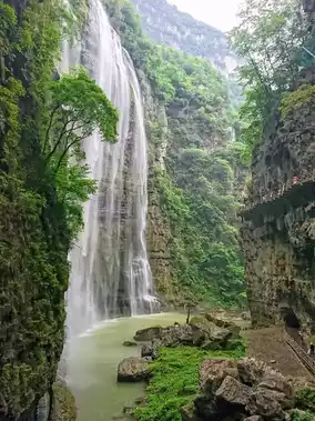 The largest Three Gorges Waterfall is about tens of meters wide. The torrent rushes down from a steep cliff over a hundred meters high. In an instant, the sky is filled with water and fog, which is spectacular. Because of the splashing water vapor, you have to wear a raincoat when watching the waterfall to avoid getting wet by the splashing water vapor!