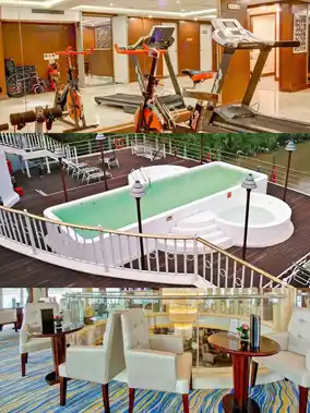 🔥There are abundant facilities on board, including cinema🎞️/KTV🎙/chess room/gym💪/SPA/bar/swimming pool🏊️