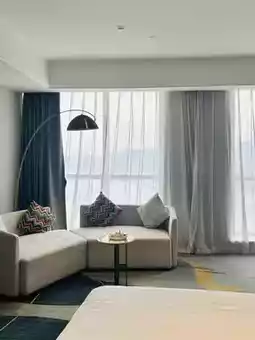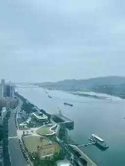Pushing open the floor-to-ceiling windows of Yijing Meiji Hotel, the 270° high-altitude river view instantly pulls you into rice paper—the Yangtze River is kneaded by mist into a pale cyan silk ribbon, with ink-dipped green mountains bleeding into the horizon on both banks. Even the cargo ships passing by become brushstrokes of negative space in this painting.