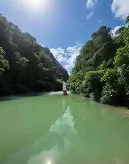 ▫️ Take a small boat into the underground karst cave, where stalactites look like the Milky Way pouring down 🌌 (a cool 18°C inside, cooler than air conditioning ❄️)