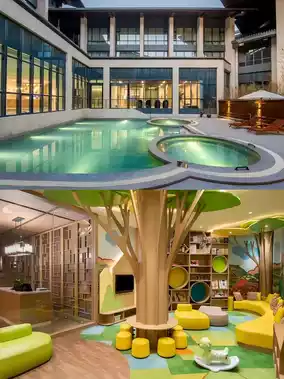 Indoor and outdoor hot spring areas, 6 special pools, including multi-functional massage pool, children's pool, ice pool, etc.