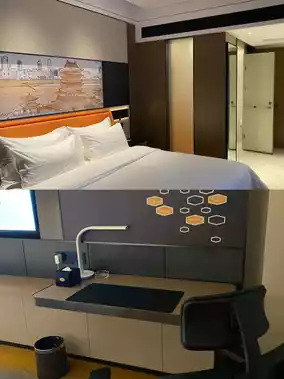 The most satisfying part of this trip was this hotel. It is quite close to the center of Yichun city, with many places to eat around. The hotel's decoration is also very new and stylish, with orange candies and fresh oranges at the front desk, as well as water to drink. The room has a comfortable bed, equipped with latex pillows, electric curtains, Xiao Du butler, and the toilet is also smart. The service attitude is good, they helped us delay the checkout time.