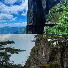 ✅ Qingyun Plank Walk: Built around Wuyun Cliff at the top of Mingyue Mountain, this suspended walkway spans across steep cliffs like a dragon coiling through clouds. Walking on the plank walk, with the deep abyss below and the howling mountain wind beside you, creates an unforgettable thrill. The scenery along the way is breathtaking, especially the sea of clouds, sometimes surging like the ocean, sometimes floating like ribbons, making you feel as if you're in a dream.