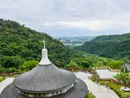 You can see the vast Lanyang Plain, and if the weather is good you may even be able to see Guishan Island. The church is also very beautiful from its location, and this dome church is rare. And the bamboo forest road area behind the church is very impressive. Is this how all martial arts movies are shot?